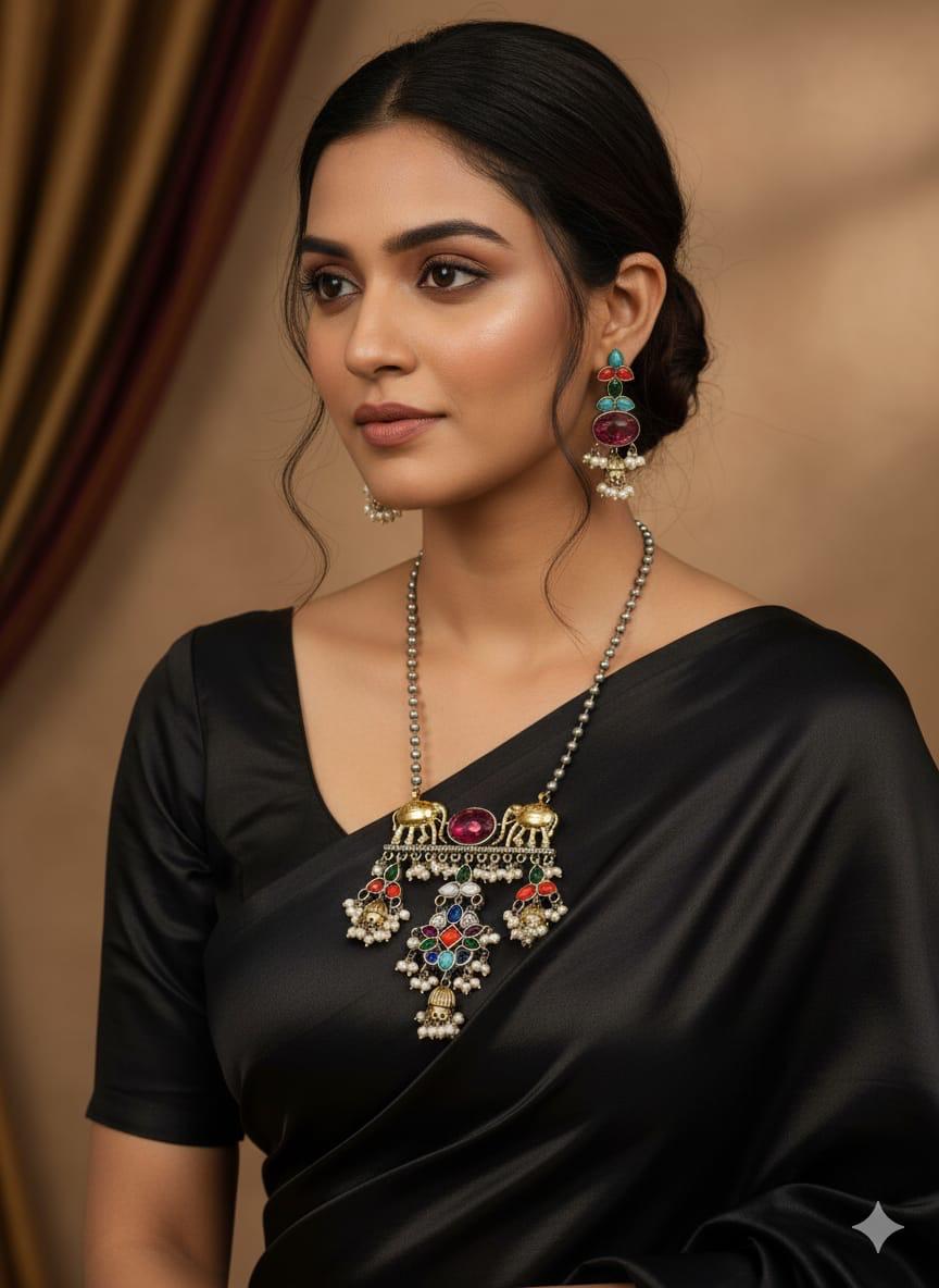 Original price was: ₹3,999.00.₹2,049.00Current price is: ₹2,049.00.Brass Multicolor Pendant Necklace Set with Earrings