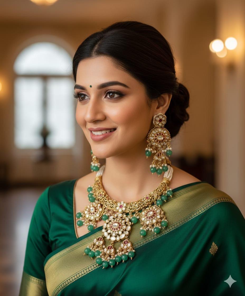Brass Kundan & Meenakari Bridal Neckpiece with Matching Chandbali Earrings