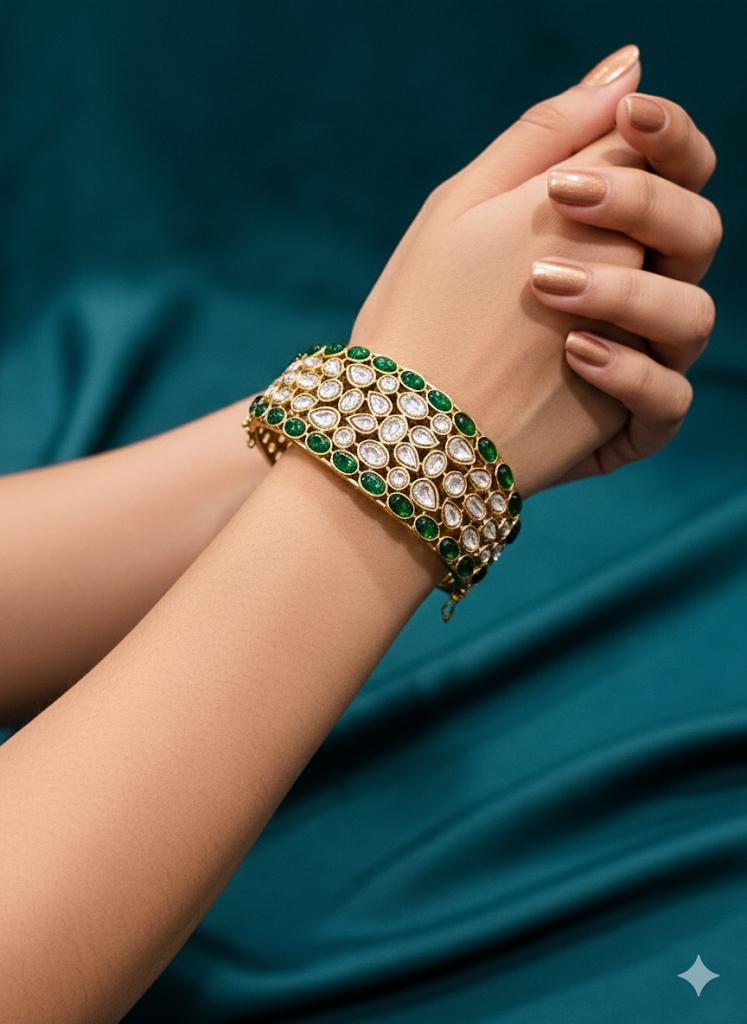 Lightweight yet visually grand, these kadas complement sarees, lehengas, and ethnic suits effortlessly. Ideal for festive celebrations, traditional ceremonies, and anyone who loves timeless Indian jewellery with a luxurious gold-polish finish.